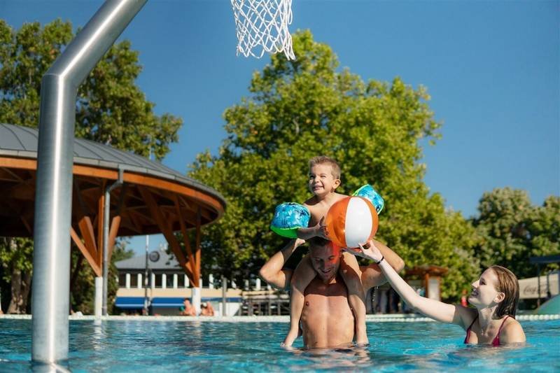 ohřívaná voda, termální voda, 23 - 36 °C, vzduchové trysky, vodní trysky, relaxační místnost, otevřen celoročně
