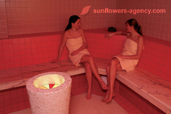 Je to sauna s teplotou 45 - 55°C a vysokou vlhkostí vzduchu (až 100%).